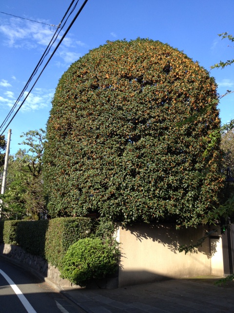 A棟手前の金木犀、秋の香を放ち始めました。