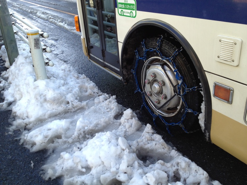 ご丁寧にチェーンを巻いてガタガタ進むバスに