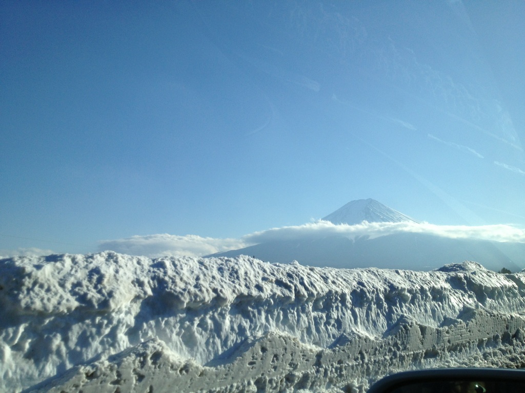 河口湖IC辺りの除雪の山