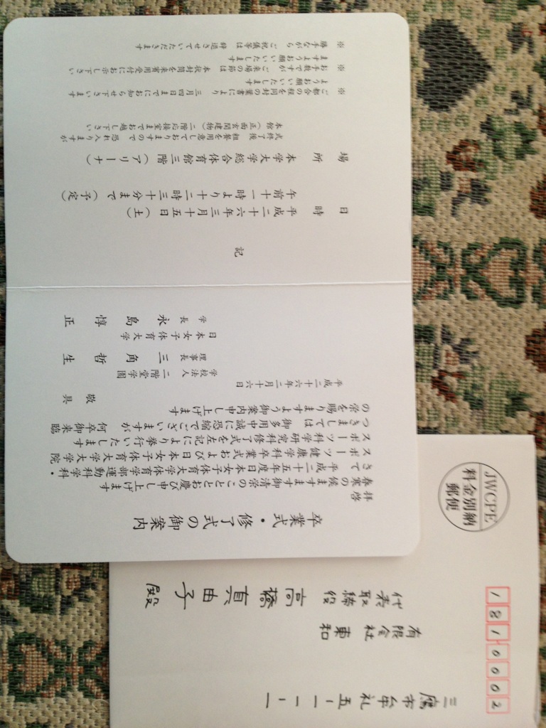 就職先の研修のため卒業式を待たずに