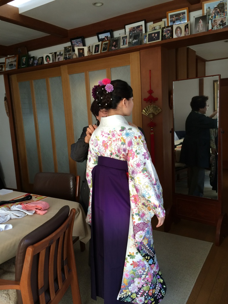 義母が着付けをお祝してあげました。