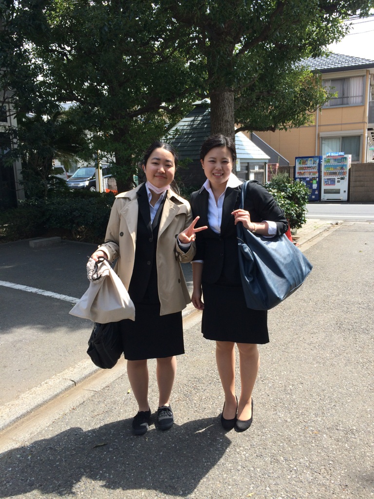 朝一番に、入学式補助に向かう2人を発見。