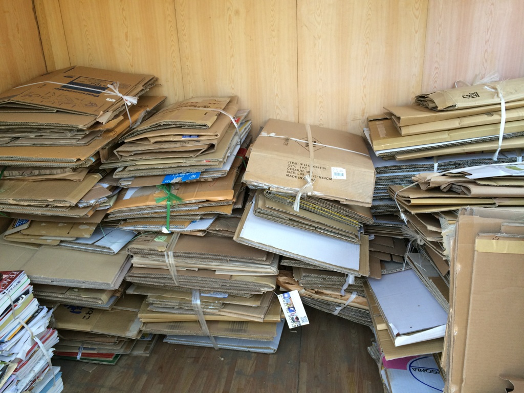 折って畳んで・・段ボールの山を築きます。