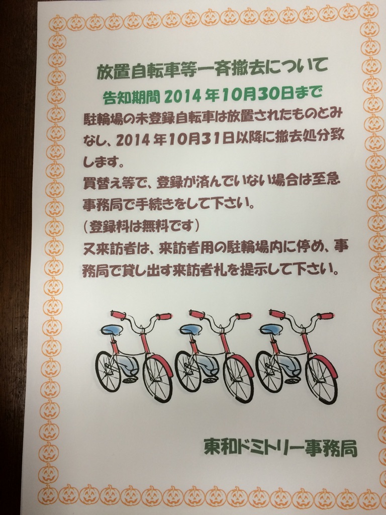 在館の皆様、今一度、自転車の登録を