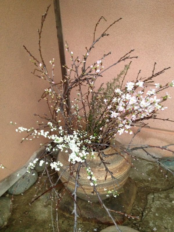 写真は桃と早咲きの桜のコラボレーション。