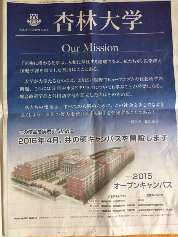 「杏林大学井の頭キャンパス誕生」